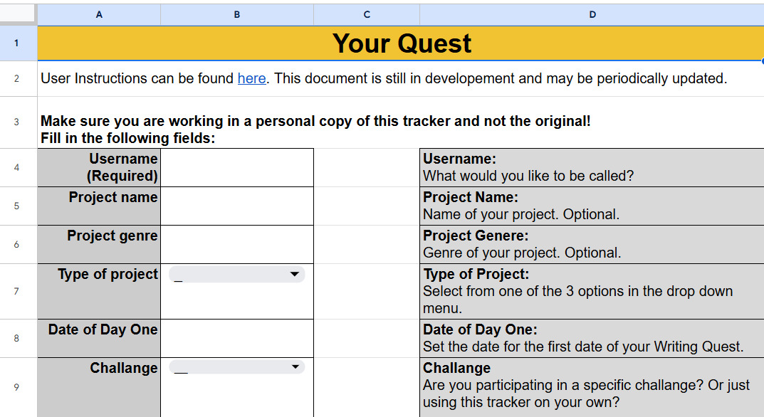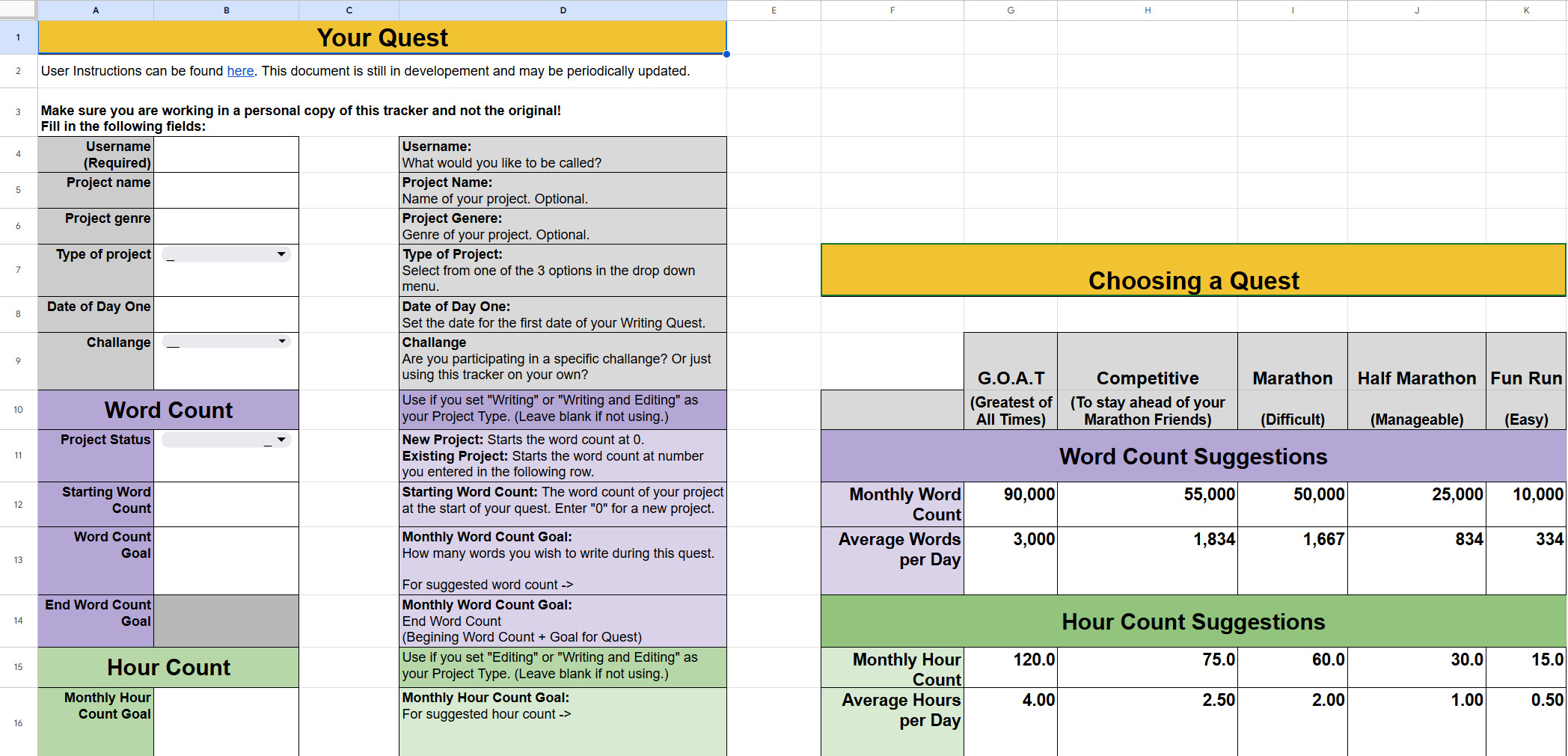 - There is a view-only google drive folder with the Writing Quests Progress Tracker (based on google sheets)